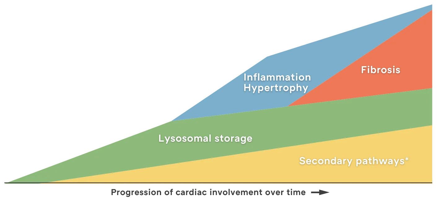 *Refers to recently discovered mechanisms active in Fabry disease including dysfunction of the endoplasmic reticulum, ion channels, Golgi bodies, mitochondria, and sarcomeres; impairment of energy production and autophagy; and apoptosis.1